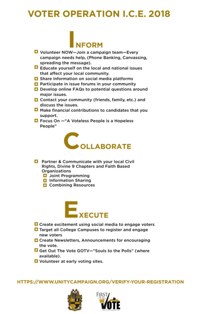 Recently, we launched our VOTER OPERATION I.C.E. 2018 that addresses voter engagement activities that focuses on how our communities should Inform, Collaborate, and Execute in anticipation of the midterm elections. Continued to follow our official social media platforms for more on this engagement.