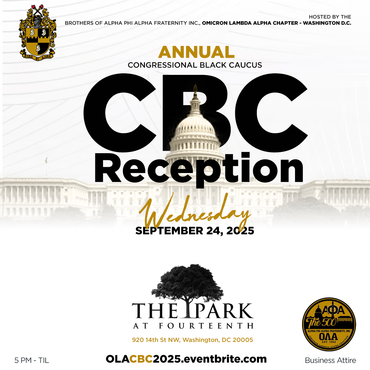 The Park at 14th 920 14th St NW, Washington, DC, United StatesJoin the Brothers of Alpha Phi Alpha Fraternity, Inc. Omicron Lambda Alpha Chapter We are hosting our Annual Congressional Black Caucus Reception. September 24th, 2025 5 PM – Until The Park at 14th 920 14th St NW, Washington, DC 20005 ATTIRE: BUSINESS Join us as we invite politicians and candidates across the political spectrum to discuss ways we can change our political landscape. In years past, we heard from politicos such as Prince George's County Executive Angela Alsobrooks, U.S. Senator and Alpha Man Raphael Warnock, St. Paul, Minnesota Mayor, and Alpha Man Melvin Carter, Howard County Executive Brother Calvin Ball, Brother Representative Al Green, Brother Mayor Rex Richardson and Congressman for the Virginia-3rd Congressional District, Alpha Man, Rep. Brother Bobby Scott, (VA-3), Brother Congressman Steven Horsford (NV -4) the former Chair of the Congressional Black Caucus, and DC Councilmember Robert White. FREE entry with RSVP before 9 PM $20 Express Entry - skip the line for expedited entry. Dinner tables are available on a first-come, first-served basis at The Park at 14th. Call the Park on the 14th at (202)-550-0300 to reserve a table for the entire evening. Music by Several DJ's Are you Interested in being a sponsor for our event and using our platform to reach up to 25,000 people […]